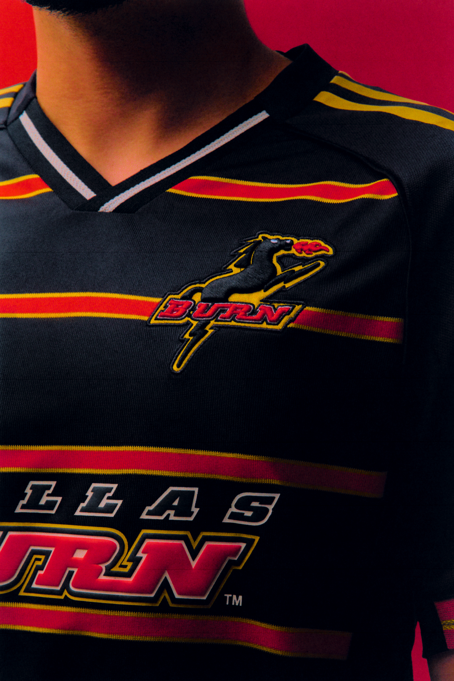 Rindiendo homenaje al uniforme local de 1998, el "Legacy Kit" une dos elementos icónicos de los primeros años del club: el nombre original "Dallas Burn" y el clásico escudo del caballo negro, también conocido como "Islamico". La base negra con llamativas franjas rojas y verdes reinterpreta la identidad inaugural del equipo en una versión inversa del diseño original.