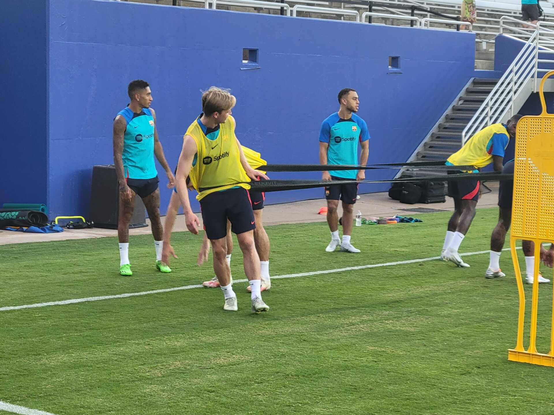 Los dirijidos por Xavi Hernandez hicieron el reconicimento del mundialista Cotton Bowl en la cuidad de Dallas el dia de ayer en una practica con miras a su partido ante la Juventus como parte del Soccer Champions Tour 2022.
